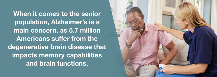 When it comes to the senior population, Alzheimer’s is a main concern, as 5.7 million Americans suffer from the degenerative brain disease that impacts memory capabilities and brain functions. Some of the disease’s symptoms include loss of appetite and depression.