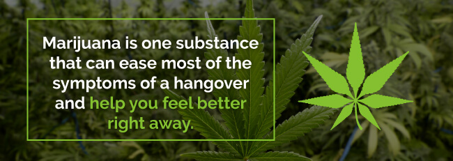 Marijuana is one substance that can ease most of the symptoms of a hangover and help you feel better right away. Unlike consuming more alcohol, marijuana dose not leave a hangover of its own. There are no withdrawal symptoms for marijuana.