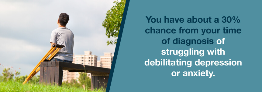 You have about a 30 percent chance from your time of diagnosis of struggling with debilitating depression or anxiety. Although there’s a 70 percent likelihood your depression or anxiety won’t be overwhelmingly distressing or debilitating, it will still impact your joy, family, work, life and personal relationships.
