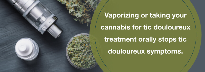 Vaporizing or taking your cannabis for tic douloureux treatment orally stops tic douloureux symptoms. Vaporizing medical weed tends to hit your system the quickest. Marinol (marijuana synthetic) can take up to an hour for you to feel its full effects.